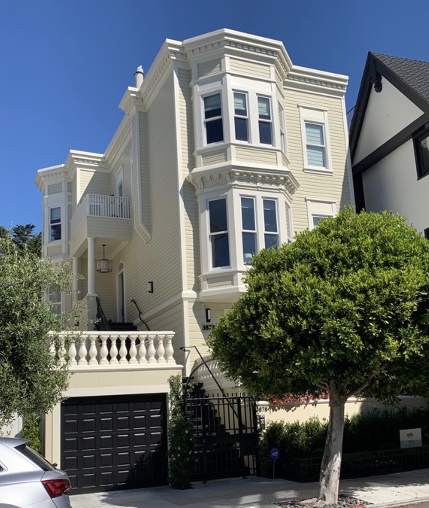 The property at 3878 Jackson Street is a three-story-over-basement, single-family residence in San Francisco’s Presidio Heights neighborhood that was initially completed in 1906 in a Shingle Style or First Bay Tradition style of architecture, with substantial alterations in the 1990s, including a large third floor addition, which transformed the property into the appearance of an Edwardian-era row house with various faux Classical Revival style architectural elements. Similar to all other residences on the 3800 block of Jackson Street, the property is a contributor to the Presidio Heights Historic District, which is eligible for listing in California Register of Historical Resources for its architectural values. As the proposed project would substantially alter the exterior of the property with a new horizontal addition, Brewster Historic Preservation was hired by the homeowners to prepare the HRE report to assist the San Francisco Planning Department in determining the home’s individual historic significance and confirm its status as a contributor to the Presidio Heights Historic District. Brewster Historic Preservation recommended that the home did not meet the criteria for individual listing in the CRHR due to the extensive alteration in the 1990s, but would continue to be a contributor to the historic district due to its architectural compatibility with the other homes in the immediate area. Work on the HRE was begun in September 2022 and completed by October 2022.